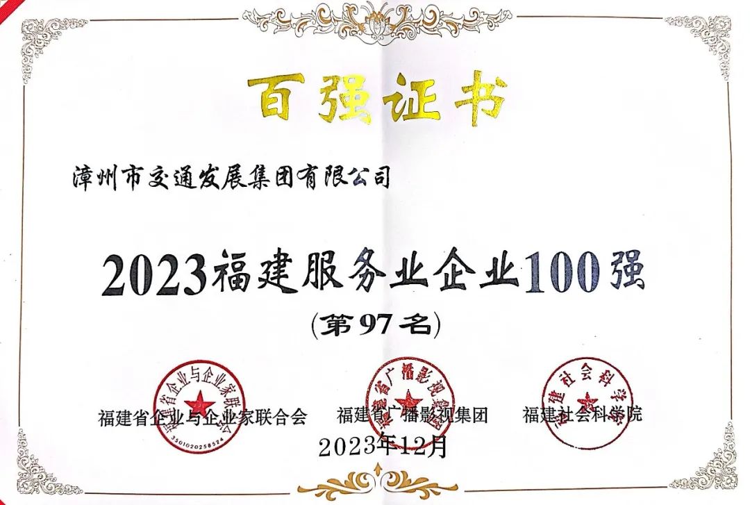 喜報!漳州交通集團(tuán)榮登2023福建服務(wù)業(yè)企業(yè)100強(qiáng)