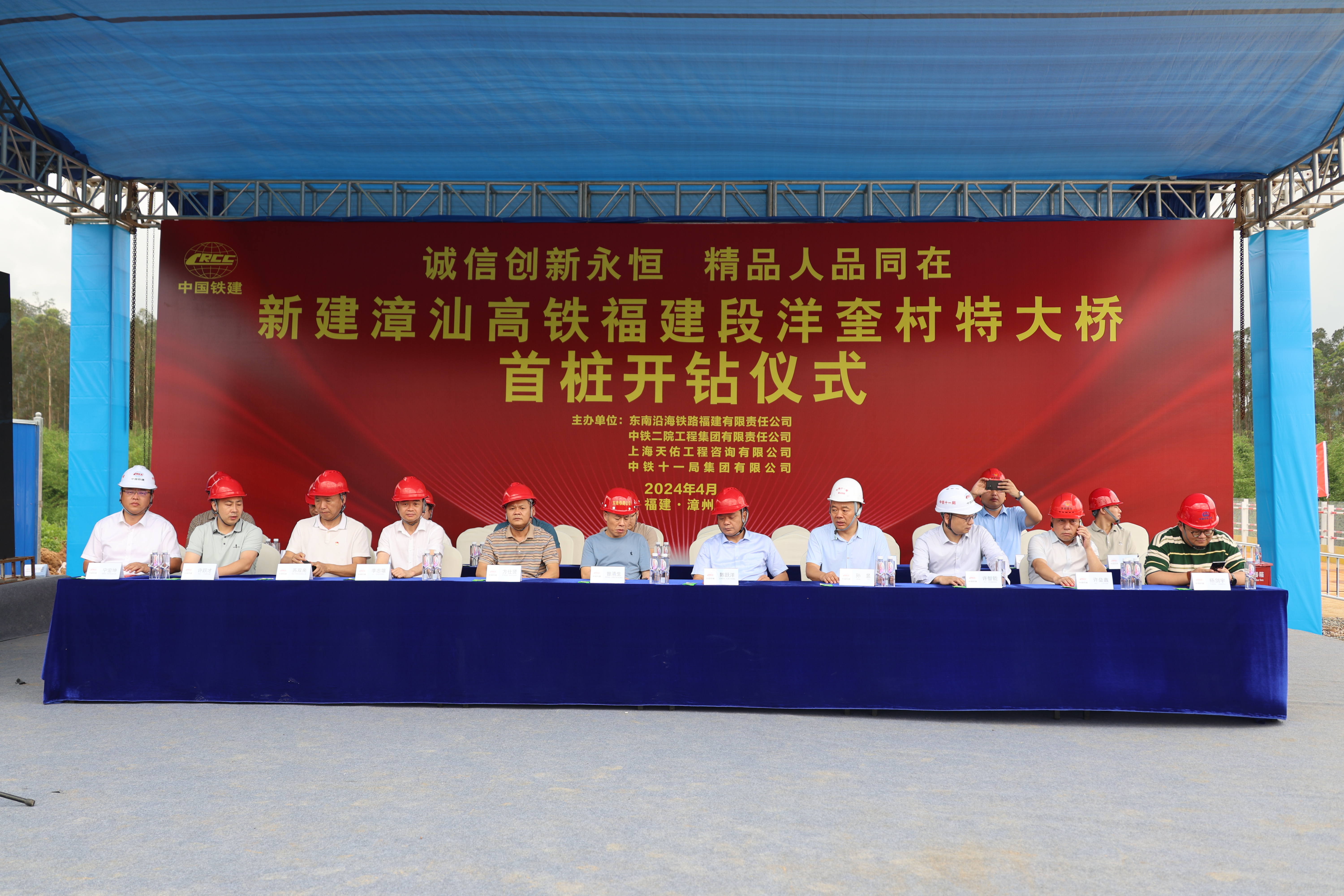 4月30日上午,由東南沿海鐵路福建有限責(zé)任公司建設(shè),中鐵大橋局、中鐵十一局負(fù)責(zé)施工的詔安南站特大橋和洋奎村特大橋樁基同時(shí)順利開鉆,標(biāo)志著漳汕高鐵福建段主體工程全面開工。