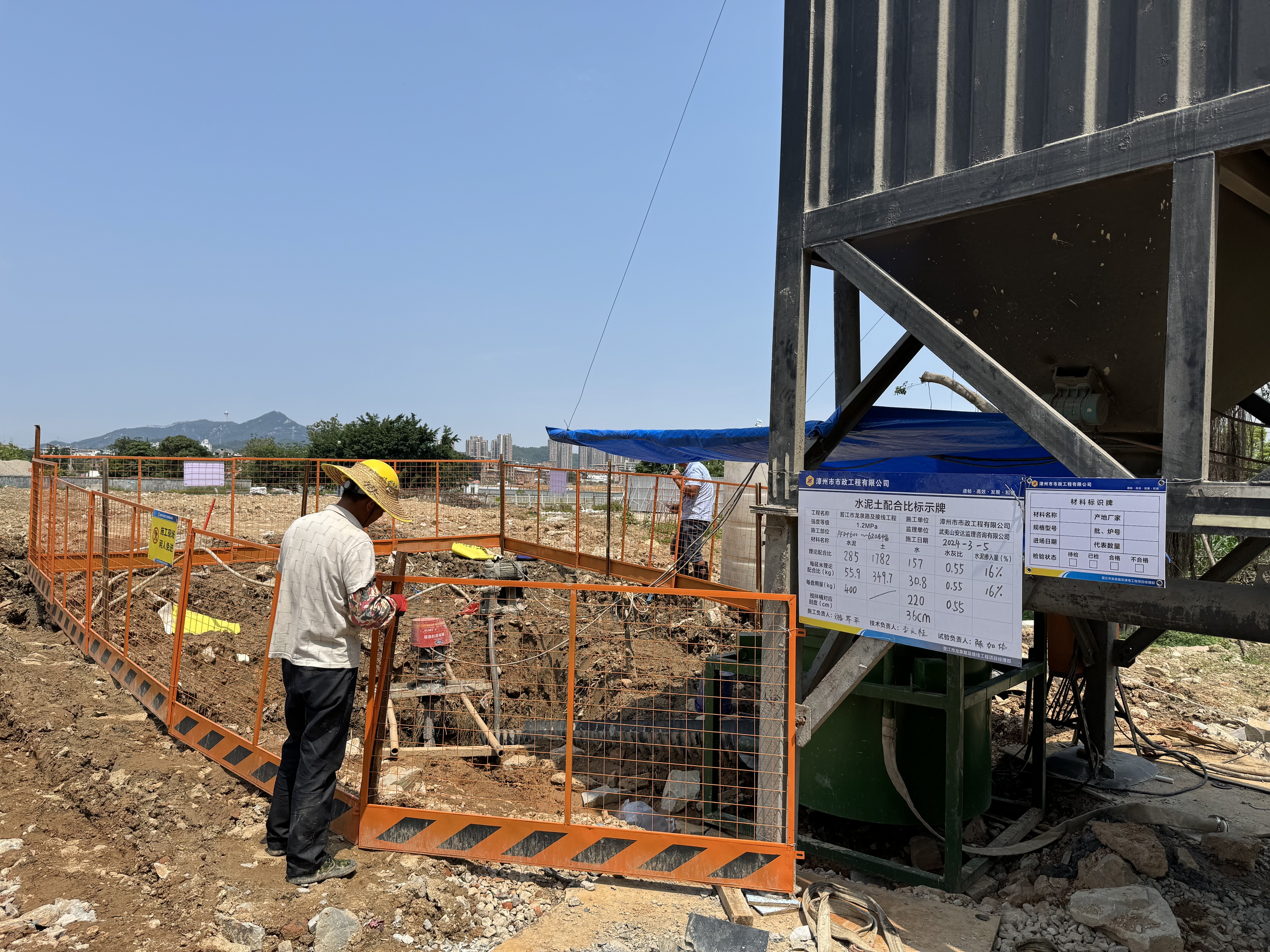 項目正處于前期建設階段,已完成項目部駐地建設、施工現(xiàn)場圍擋、洗車池建設、清表及水泥攪拌樁試驗樁等工作。