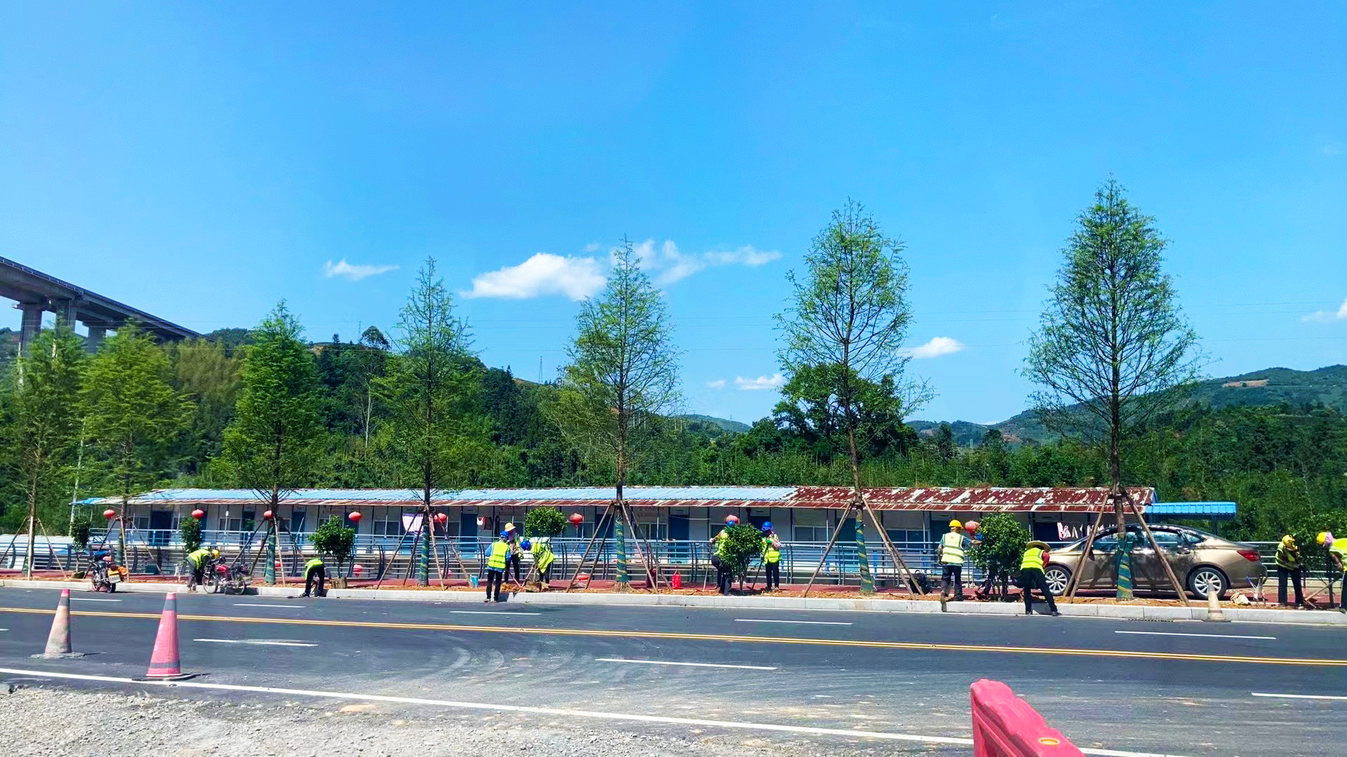 本項目是南靖縣書洋鎮(zhèn)旅游接待中心至云水謠景區(qū)的主要通道。“五一”假期,梅書線項目經(jīng)理部全員堅守崗位,實時關注天氣情況,全面加強現(xiàn)場管控,井然有序組織施工人員搶抓工期施工,鉚足干勁推進度。114名一線工人緊張有序地進行護欄安裝、綠化種植等作業(yè),挖機、鏟車、壓路機、攤鋪機等13臺機械設備全速運轉(zhuǎn),全力推進項目各項節(jié)點任務建設。