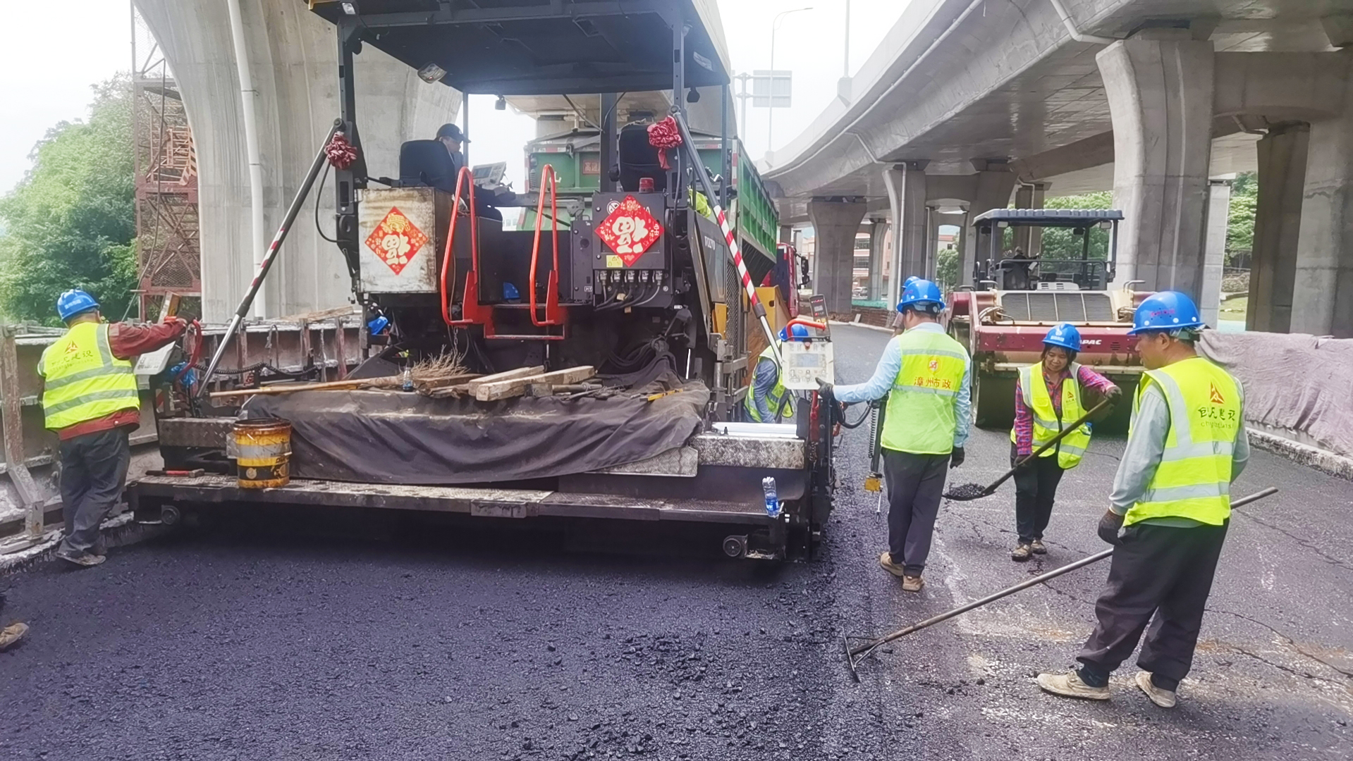 省道219線龍海雩林至翠林段提升改造工程A1標段瀝青混凝土路面工程,采用主線高架+地面輔道模式,“五一”假期,兩臺攤鋪機同時作業(yè)、有序攤鋪,現(xiàn)場作業(yè)人員與機械密切配合,確保攤鋪達到設計要求。目前,項目已完成頂社互通A、B、E匝道和同城大道拼寬段瀝青混凝土路面攤鋪。該階段施工任務完成后,累計完成產(chǎn)值1600萬,占瀝青混凝土路面總產(chǎn)值60%,為實現(xiàn)項目后續(xù)階段性目標爭取了寶貴時間,也為實現(xiàn)總體目標奠定了堅實基礎。