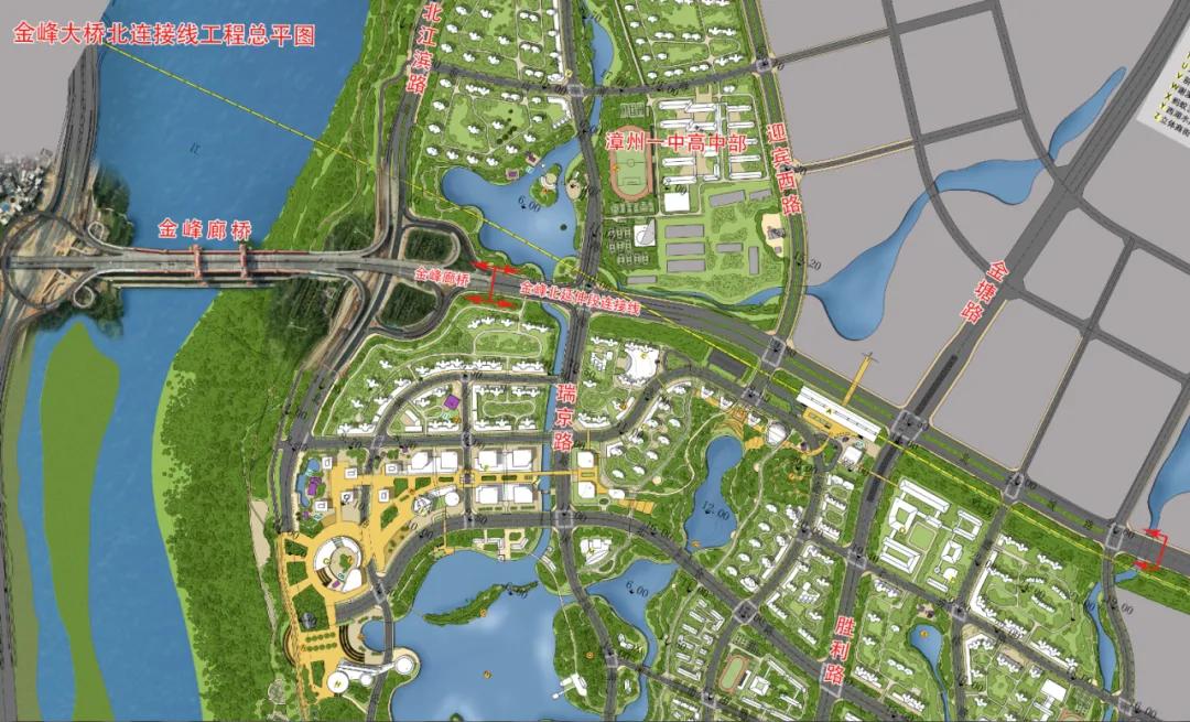 金峰大橋北連接線工程位于漳州市薌城區(qū)西湖生態(tài)園片區(qū),項(xiàng)目起點(diǎn)接金峰大橋北江濱互通鼻端處,終點(diǎn)接北環(huán)城路,全長(zhǎng)1.79km。路基寬度60m,設(shè)計(jì)速度60km/h,道路等級(jí)為城市主干路。項(xiàng)目主要工程內(nèi)容包括道路交通、橋涵、管廊、給水、污水、雨水、照明、電力、通信和綠化等。項(xiàng)目共新建橋梁3座,全線管廊采用雙艙管廊,管廊總長(zhǎng)度為1517m。