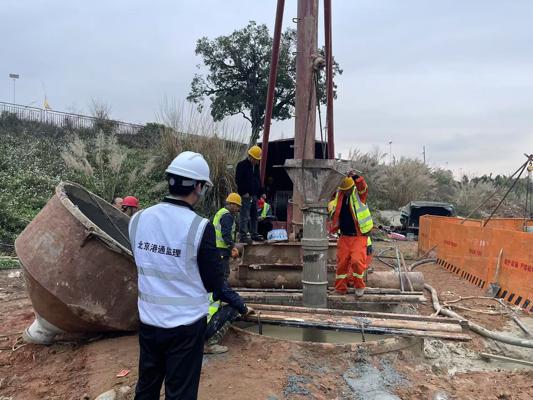 為確保首樁順利灌注,通邦公司項(xiàng)目團(tuán)隊(duì)精心籌備,嚴(yán)格把控每一個施工環(huán)節(jié)。施工前期,技術(shù)人員對地質(zhì)情況進(jìn)行了詳細(xì)的分析,制定了科學(xué)合理的施工方案;針對可能出現(xiàn)的如塌孔、堵管等質(zhì)量安全隱患制定了應(yīng)急預(yù)案。
