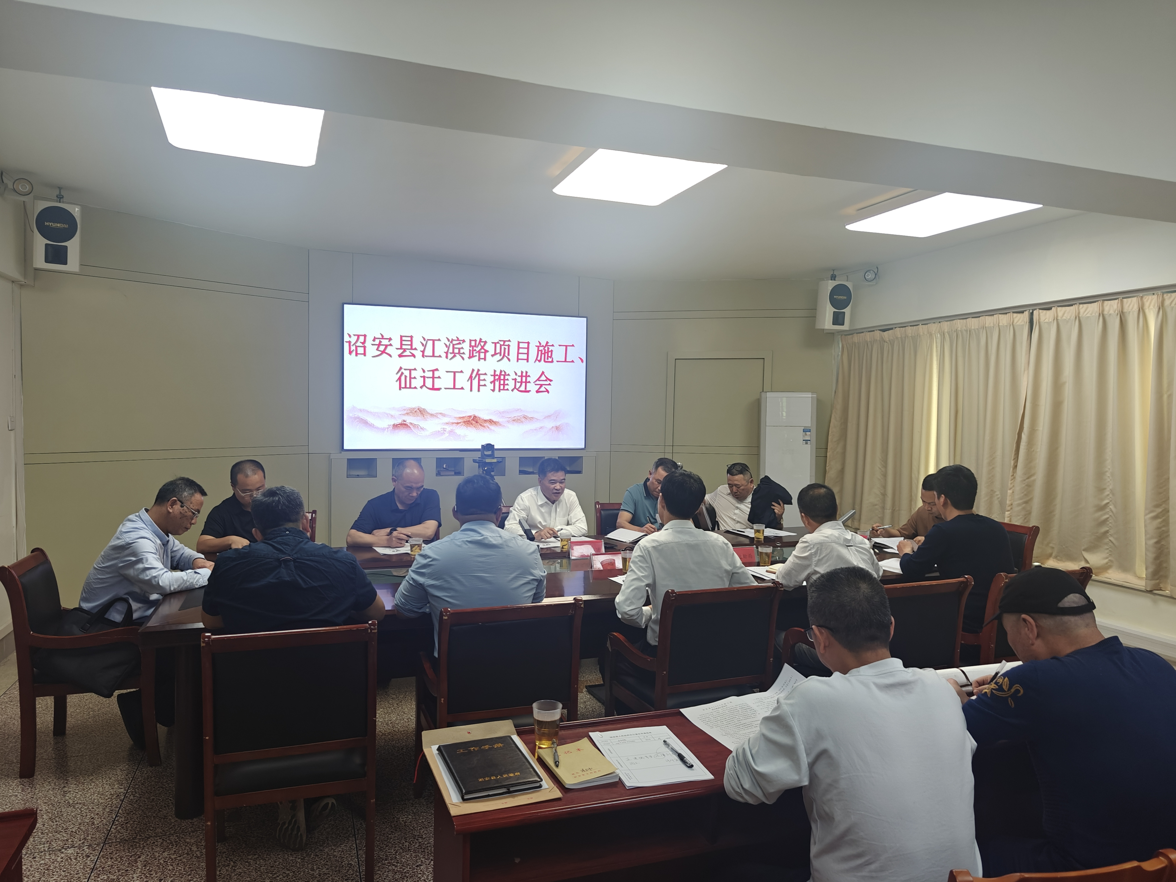 林長(zhǎng)河總經(jīng)理一行與詔安縣副縣長(zhǎng)黃選謙到縣政府組織召開(kāi)項(xiàng)目推進(jìn)會(huì),協(xié)調(diào)解決關(guān)于工程進(jìn)度安排、征地拆遷等項(xiàng)目施工中存在的問(wèn)題。