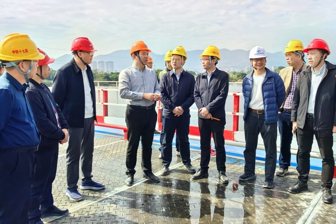 陳禮彪一行深入調(diào)研了漳汕高鐵福建段大嶺隧道全工序機械化施工情況,隨后深入漳詔擴容工程A9標佳洲島特大橋施工現(xiàn)場,詳細聽取了項目駐地建設(shè)、要素投入、施工進度等情況,并就下階段工作提出工作要求:
