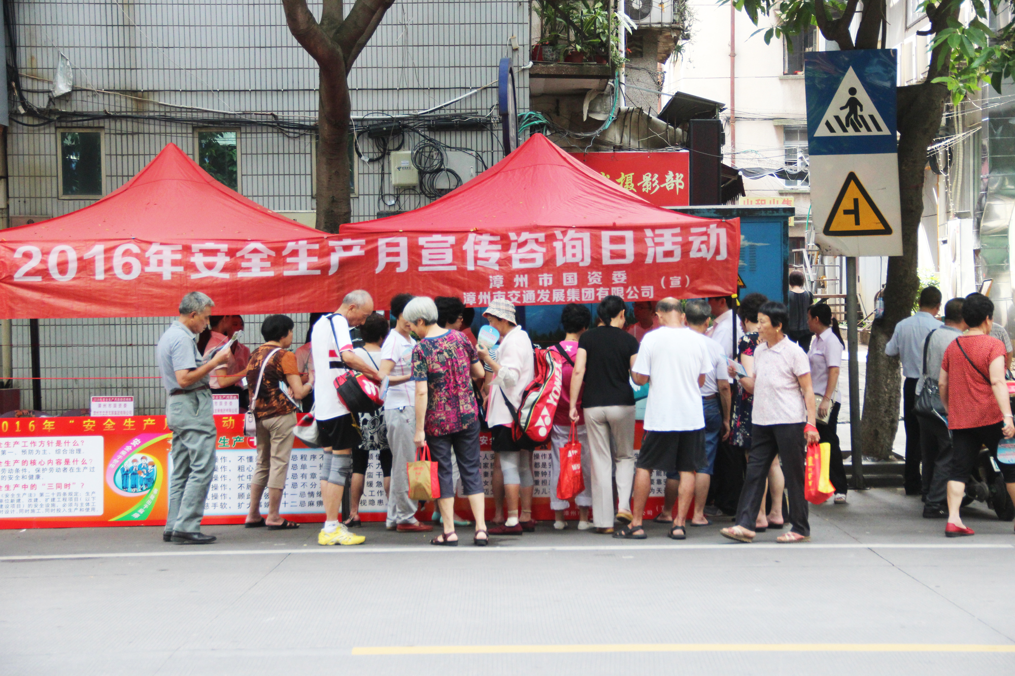 活動現(xiàn)場采取展示宣傳展板、設(shè)置咨詢臺、發(fā)放安全宣傳手冊等形式,向廣大市民宣傳了安全生產(chǎn)法律法規(guī)、生產(chǎn)安全技術(shù)知識、日常消防逃生等安全常識,內(nèi)容豐富,圖文并茂。現(xiàn)場通過搶答安全生產(chǎn)知識問題、競猜謎語等交流互動方式激發(fā)廣大市民的熱情,現(xiàn)場市民十分踴躍。工作人員市民發(fā)放安全手冊、漳州市區(qū)公交車運行線路手冊等各類安全資料2000余份,接受市民咨詢200余次。