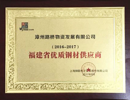 路橋物資公司榮獲“2016-2017年度福建省優(yōu)質(zhì)鋼材供應商”稱號