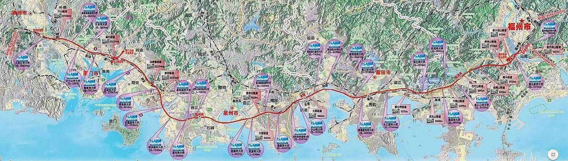 福廈(漳)高鐵既是我省首條時(shí)速350公里的高鐵,也是全國(guó)首條跨海高鐵。全線設(shè)有福州南、福清西、莆田、泉港、泉州南、廈門北、漳州等7個(gè)站點(diǎn),預(yù)計(jì)2022年通車。北端銜接合福高鐵、向莆鐵路,南端銜接廈深、龍廈鐵路,建成后將把漳州與福州間行程縮至1小時(shí)左右,并實(shí)現(xiàn)從漳州到北京一路“高鐵進(jìn)京”。